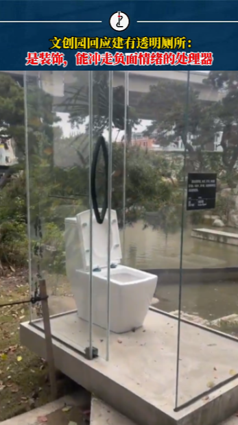 网友吐槽创意园区内建全透明厕所,工作人员:只是个装饰,是冲走负面情绪的处理器